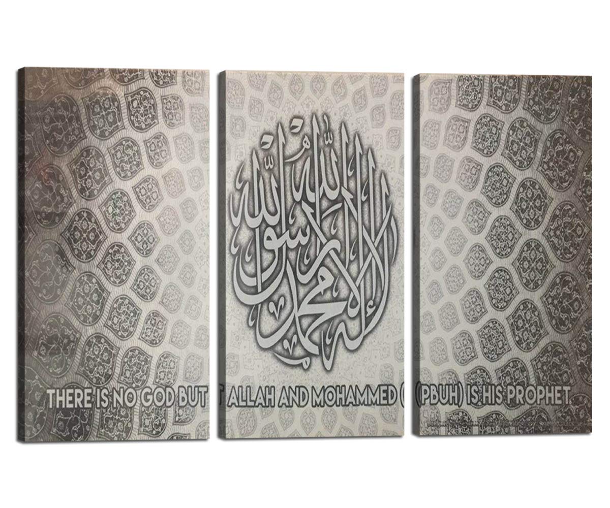 Amazon Com Oufeiyan Arabic Calligraphy Islamic Wall Art 3 Panel Canvas Abstract Oil Paintings Surah Allah Artwork Islam Letters Words Modern Pictures For Home Decorations Framed Ready To Hang 36 Wx20 H Posters Prints