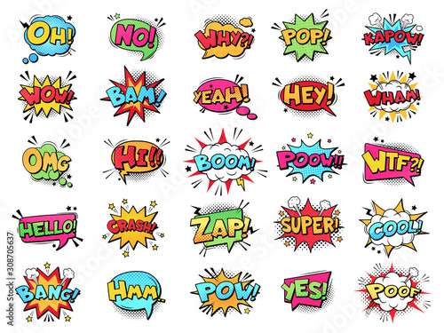 Image Details Ist 21327 00009 Exclamation Texting Comic Signs On Speech Bubbles Cartoon Crash Pow Bomb Wham Oops And Cool Comic Sign Set Funny Comics Words Vector Collection Exclamation Texting Comic Signs On