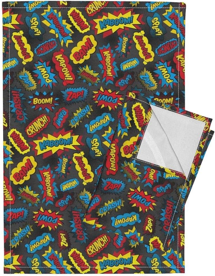 Amazon Com Comic Book Words Sci Fi Geek Nerd Funny Exclamation Tea Towels Super Words Dark By Robyriker Set Of 2 Linen Cotton Tea Towels Home Kitchen