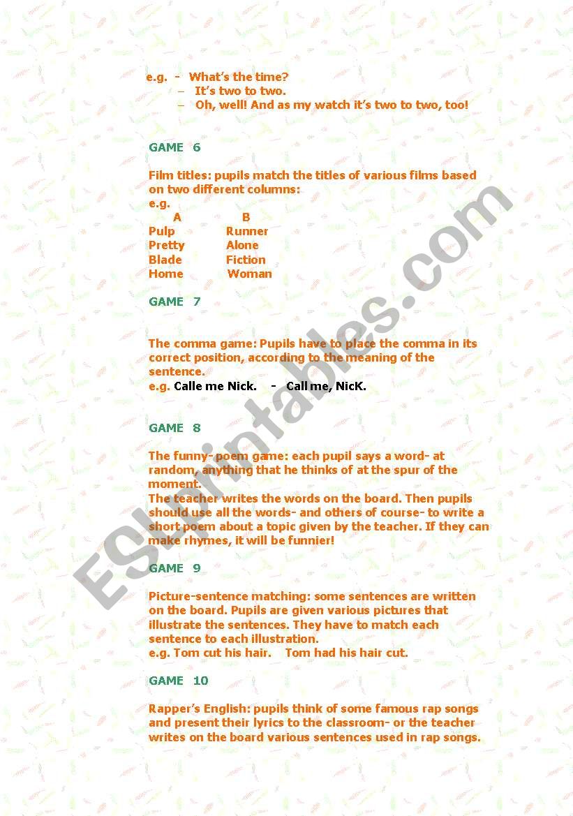 Interesting And Funny Games With Words A Selection Of Ten Games Rules And Examples All Levels Esl Worksheet By Aabazi