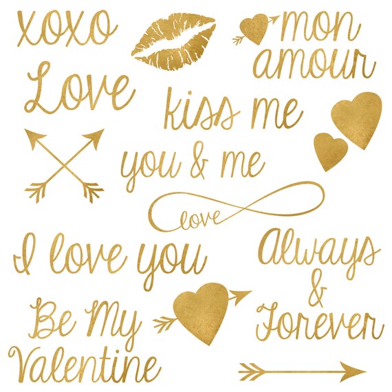 Golden Words Of Love Digital Clipart Set Of 14 Gold Foil Etsy