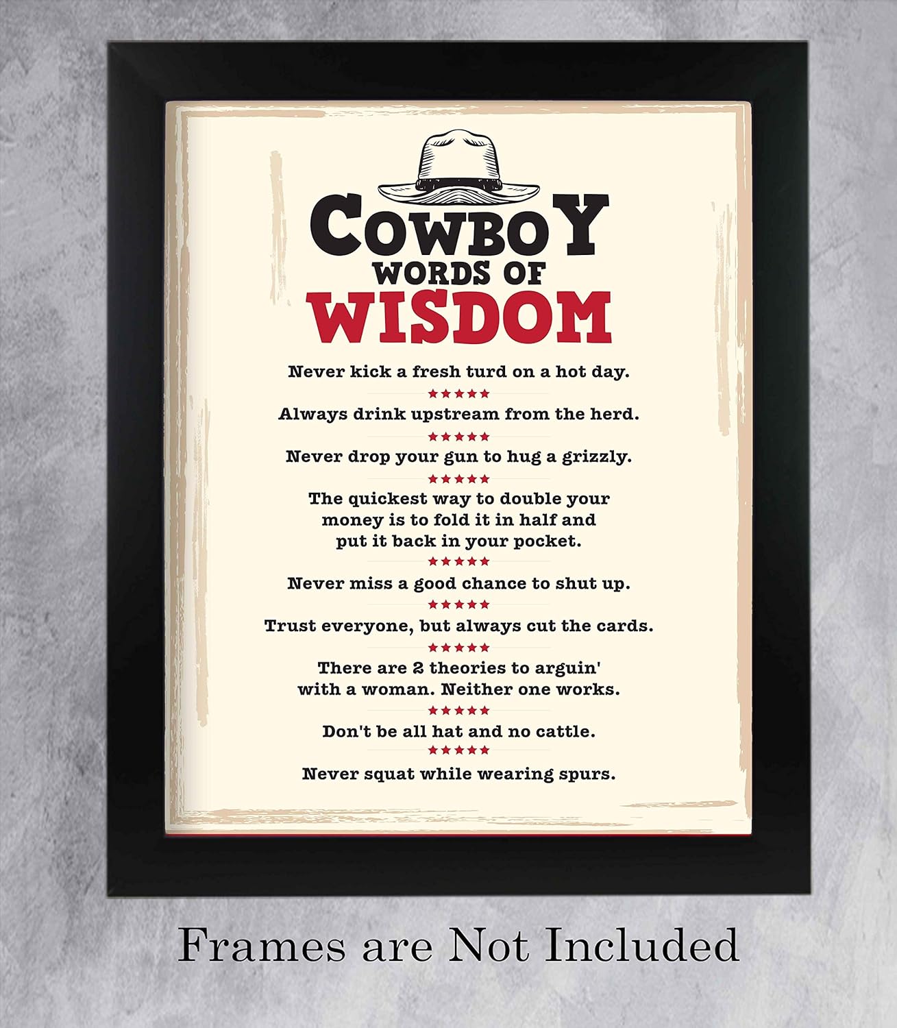 Amazon Com Cowboy Words Of Wisdom Funny Western Sign 11 X 14 Country Wall Art Rustic Typographic Print Ready To Frame Humorous Decor Perfect For Home Bar Man Cave Cabin Barn Fun Gift For All Cowboys Handmade