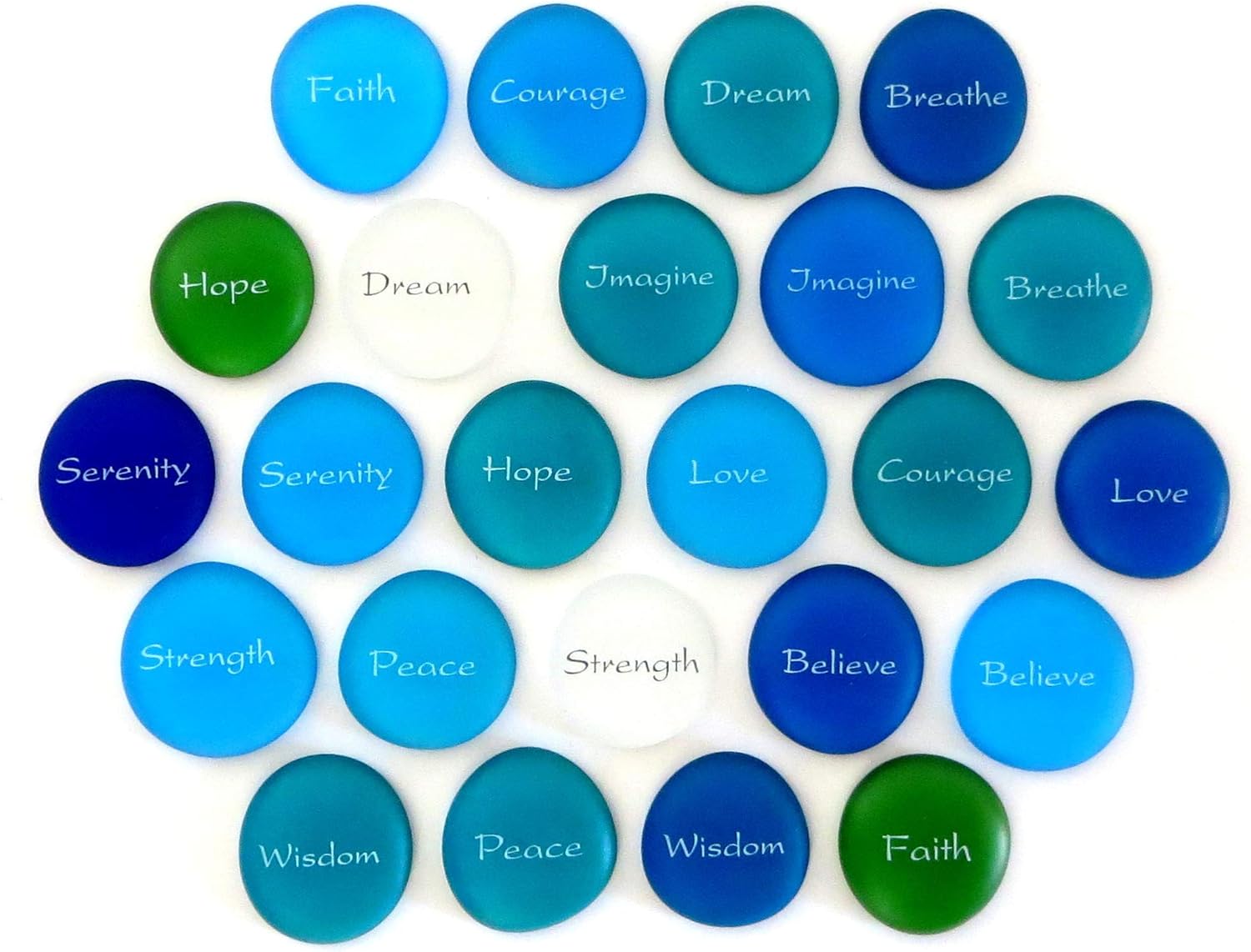 Amazon Com Lifeforce Glass The Mermaid S Message 24 Frosted Inspirational Sea Glass Stones Assorted Two Each Of Twelve Inspiring Words In Beach Colors Home Kitchen