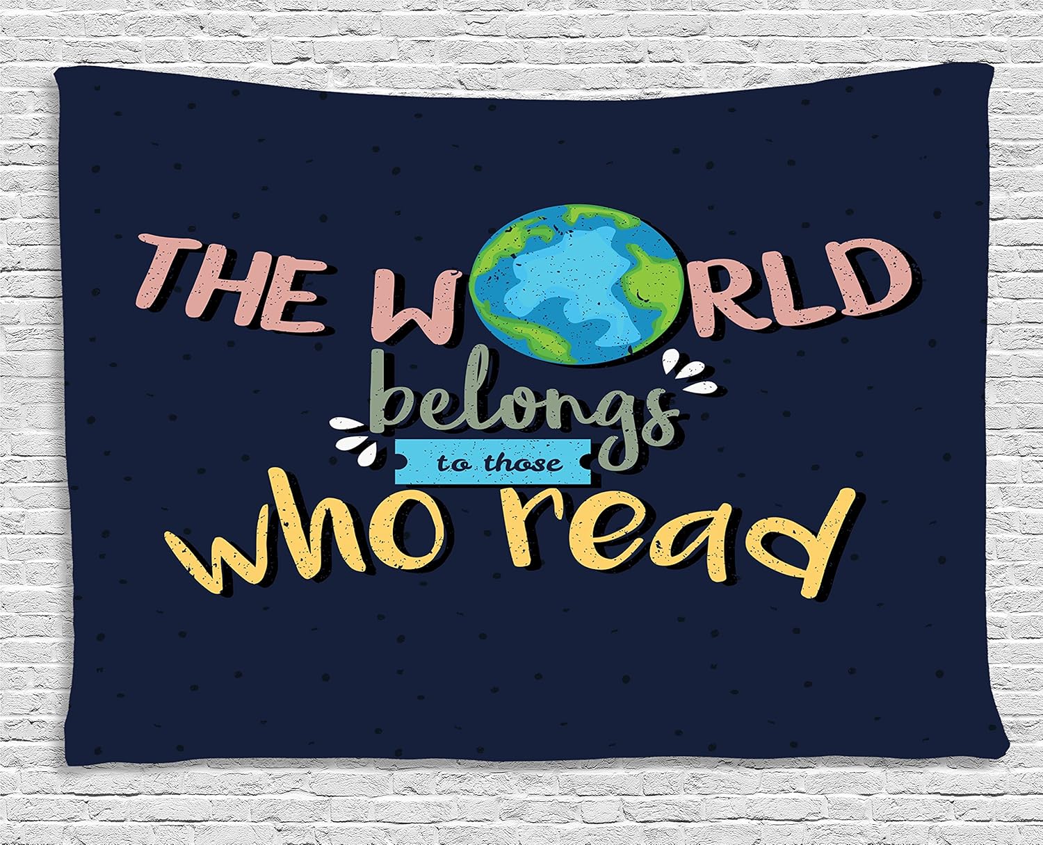 Amazon Com Ambesonne Book Tapestry World Belongs To Those Who Read Inspirational Words Print On Dark Blue Background Wide Wall Hanging For Bedroom Living Room Dorm 80 X 60 Navy Blue Home