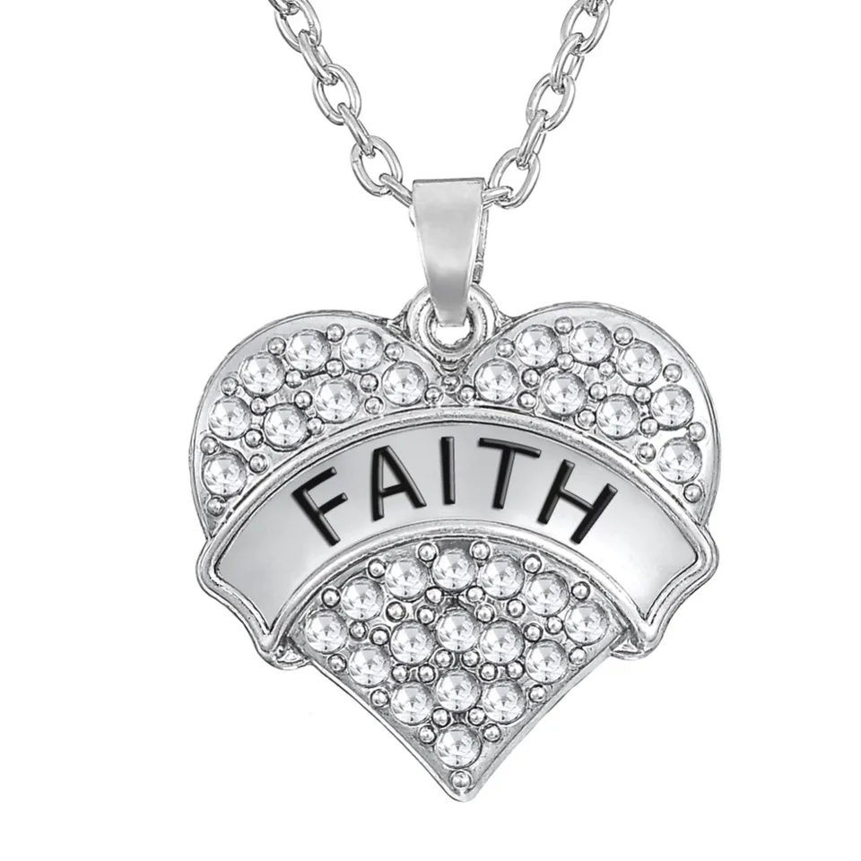 My Shape Clear Crystal Heart Pendant Faith Necklace Inspirational Word Borizcustom