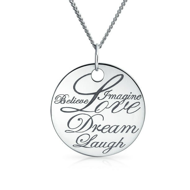 Bling Jewelry Inspirational Mantra Word Quote Round Circle Disc Love Dream Laugh Pendant Necklace For Women Teen 925 Sterling Silver Walmart Com Walmart Com