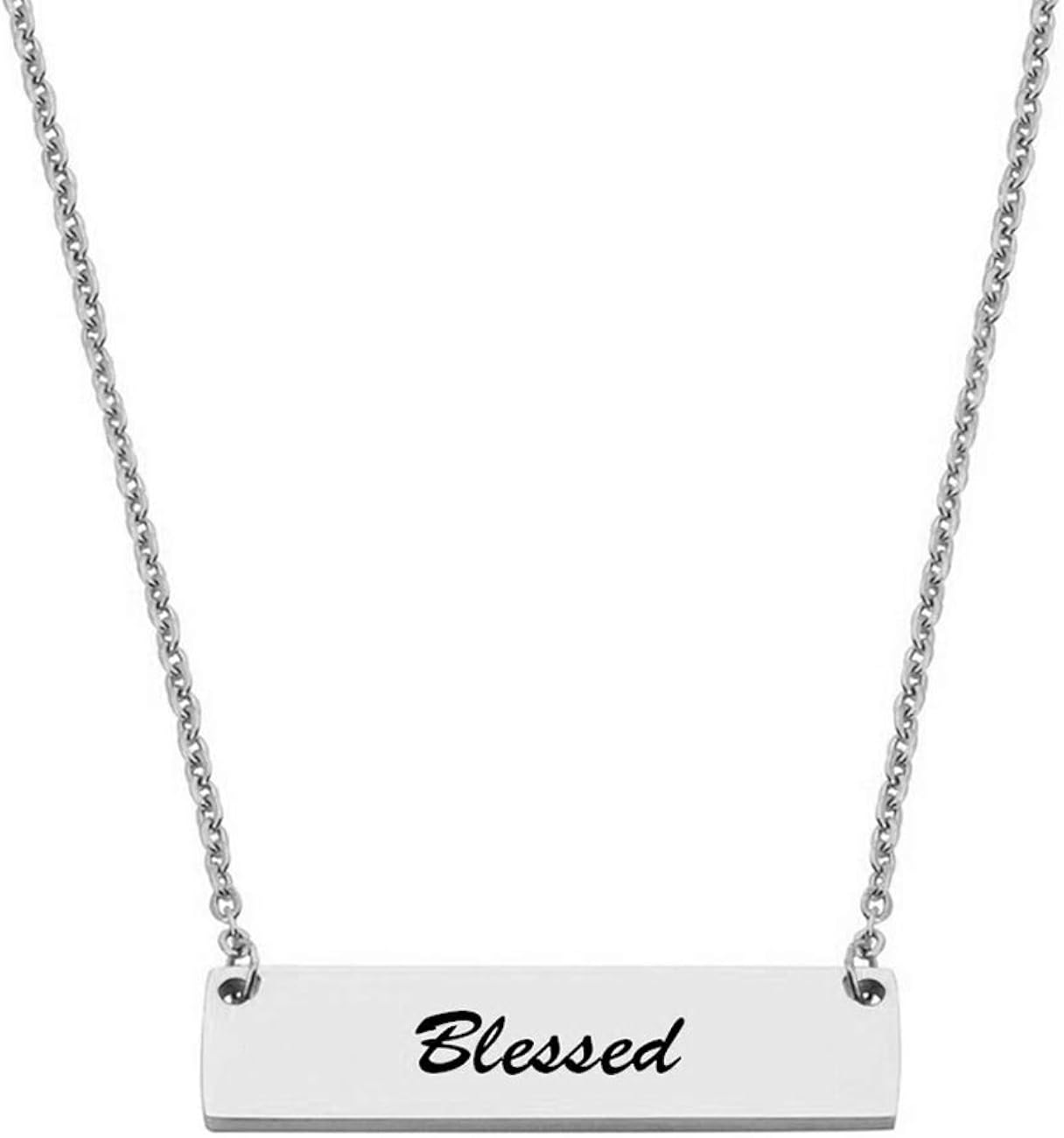 Amazon Com Jjtzx Blessed Engraved Inspirational Word Bar Necklace Power Words Pendant Necklace For Women Girls Silver Blessed Clothing