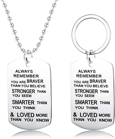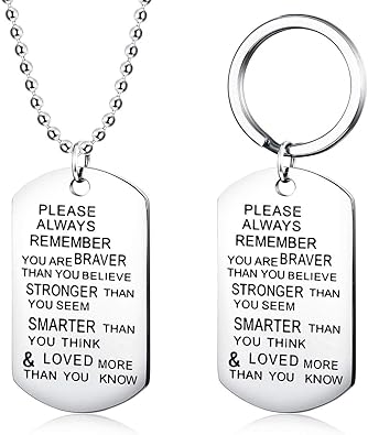 Florideco 2pcs Stainless Steel Tag Necklace Military Keychain For Men Army Dog Tags Pendant Inspirational Words Jewelry Beads Ball Chain Necklace Silver Tone Amazon Com