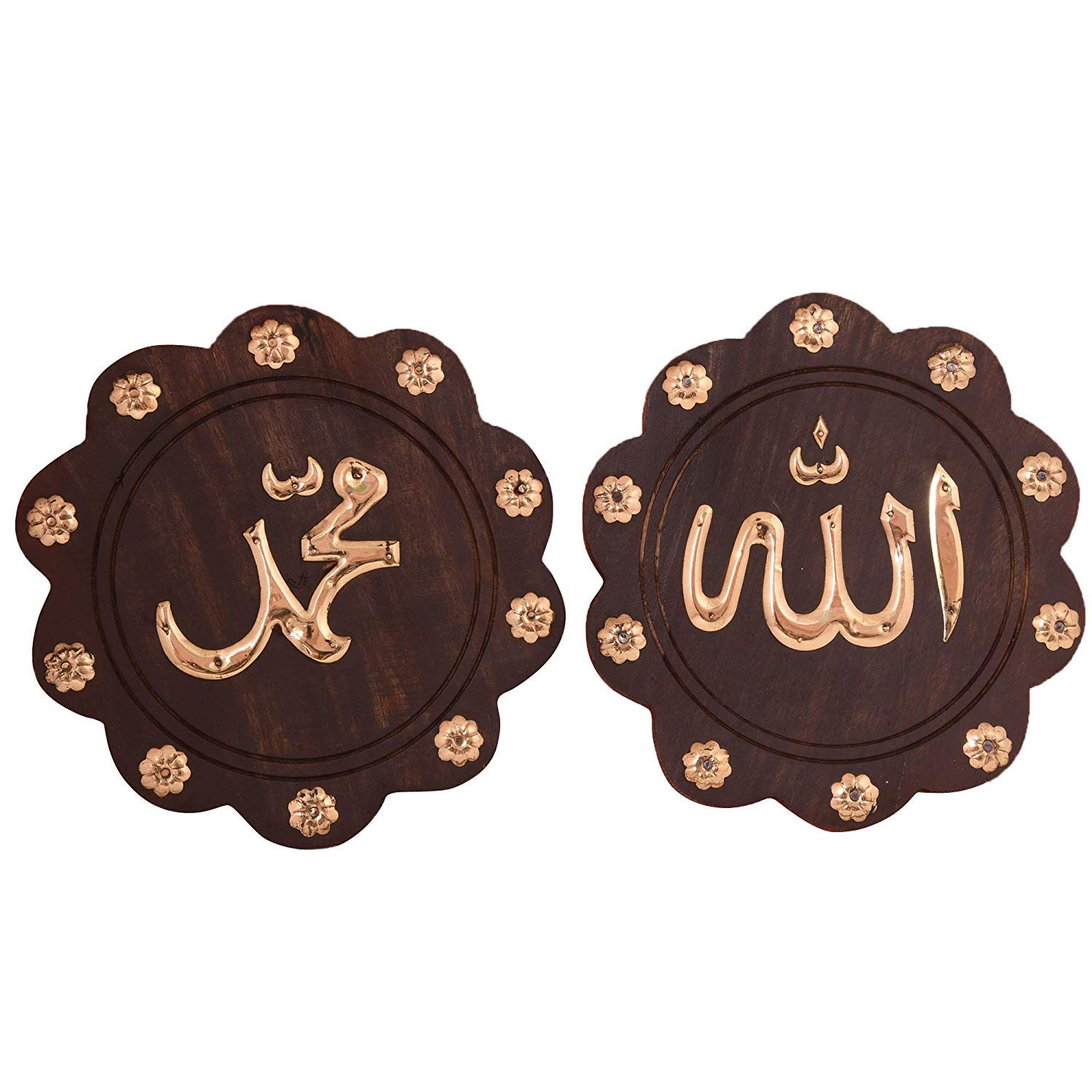 Buy Diollo Arabic Calligraphy Allah Muhammad Wooden Gift Islam Muslim Word Quran Art Wall Hanging Set Of 2 Online At Low Prices In India Amazon In