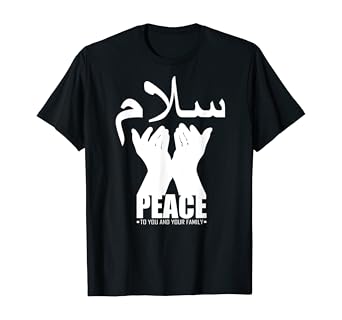 Amazon Com Salaam Islamic Word For Peace With Arabic Text Prayer Hand T Shirt Clothing