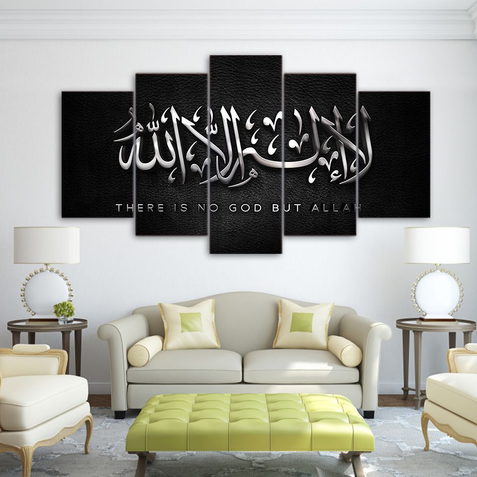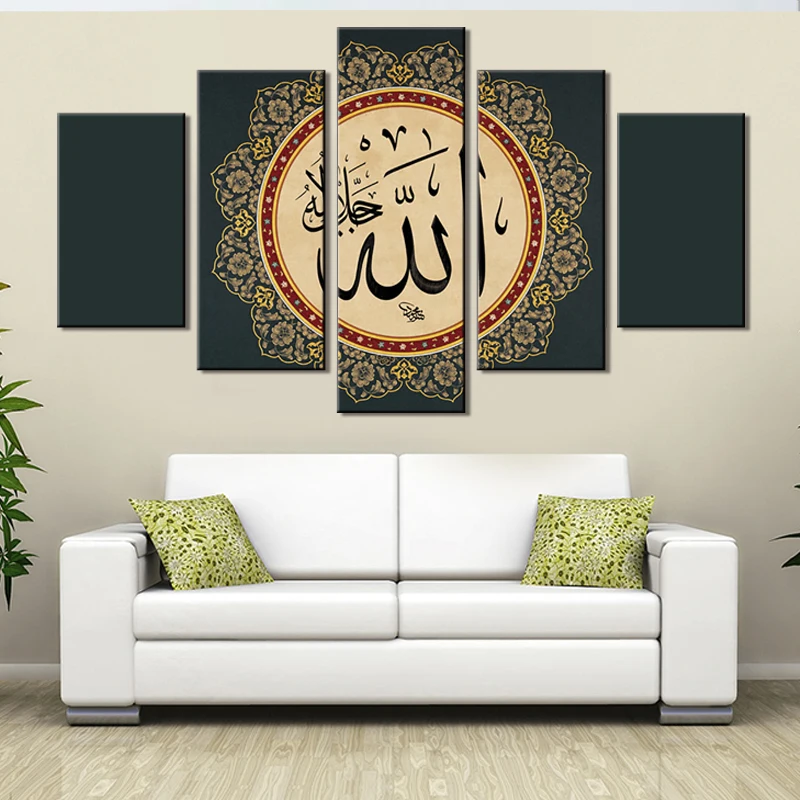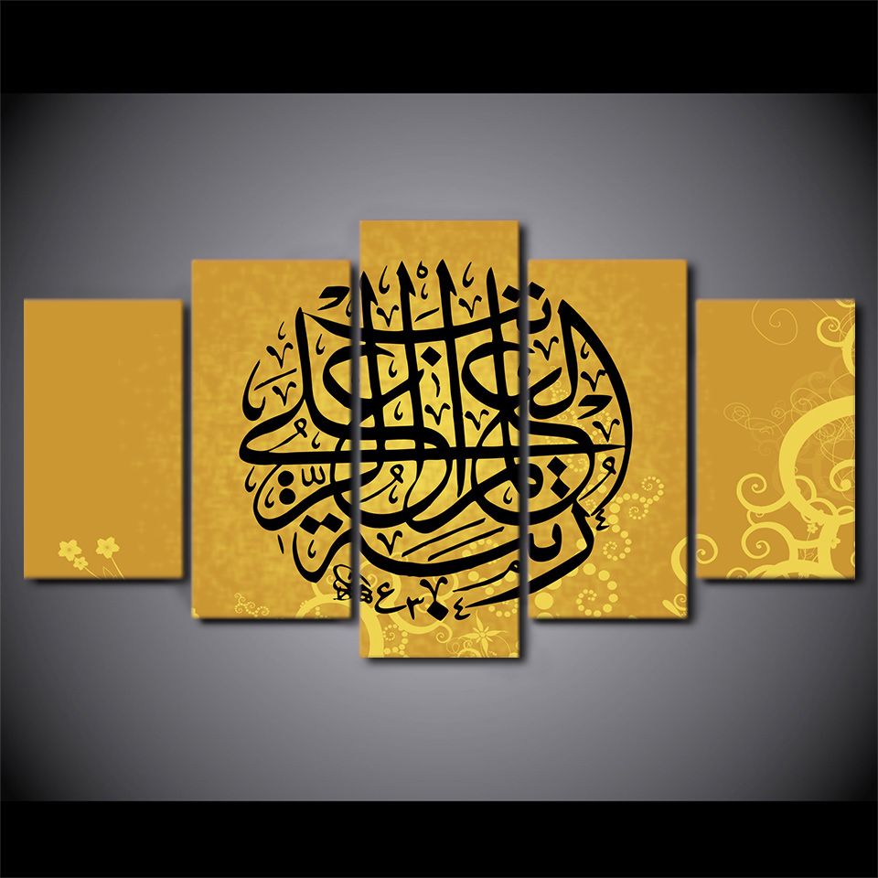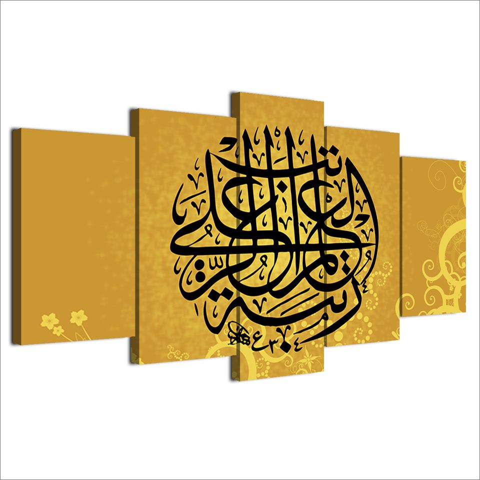Islamic Words Art Painting On Canvas Wall Art Acrylic Canvas Spray Prints Home Decor 5 Panel Cuadros Painting Muslin Culture Buy Islamic Words Art Painting On Canvas Wall Art Acrylic Canvas Spray