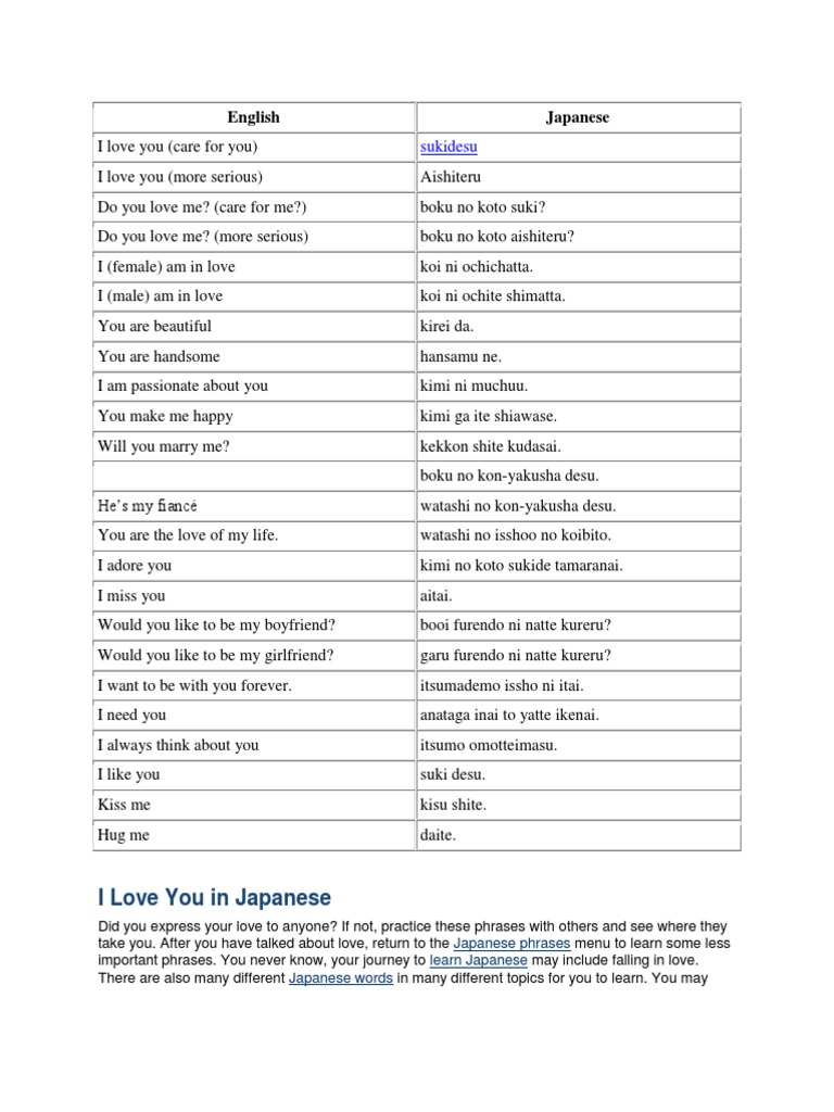 Japanese Phrases Related To Love