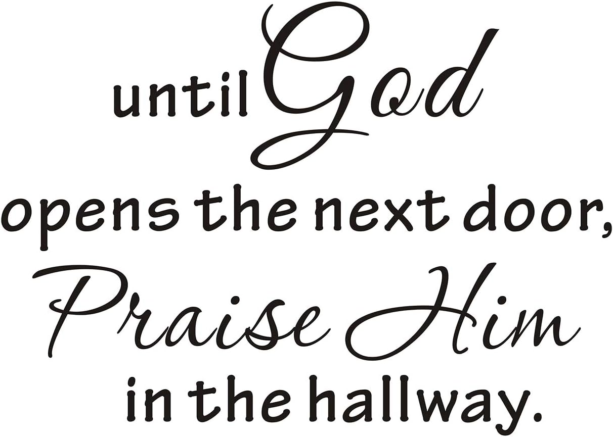 Amazon Com Everysticker4u Until God Opens The Next Door Praise Him In The Hallway Religious Gift Stencil Office Bedroom Quote Sticker Decals Words Lettering Size1 23 Wide X 16 5 Tall Arts Crafts Sewing