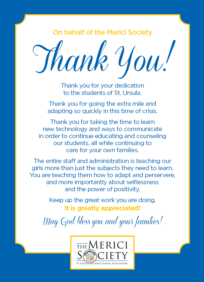 St Ursula Academy On Twitter Today We Received This Lovely Thank You From The Merici Society Sua S Parent Association We Truly Appreciate The Love Support And Words Of Encouragement We Ve Received From