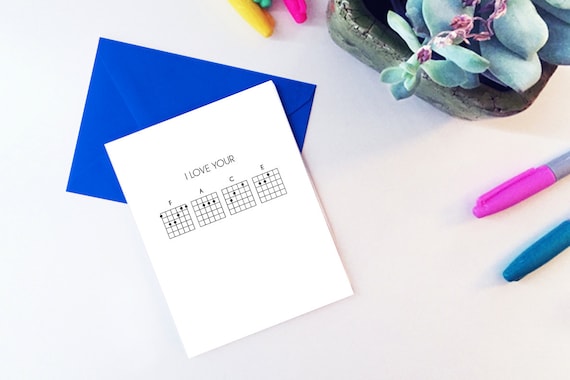 I Love Your Face Guitar Chord Greeting Card Etsy