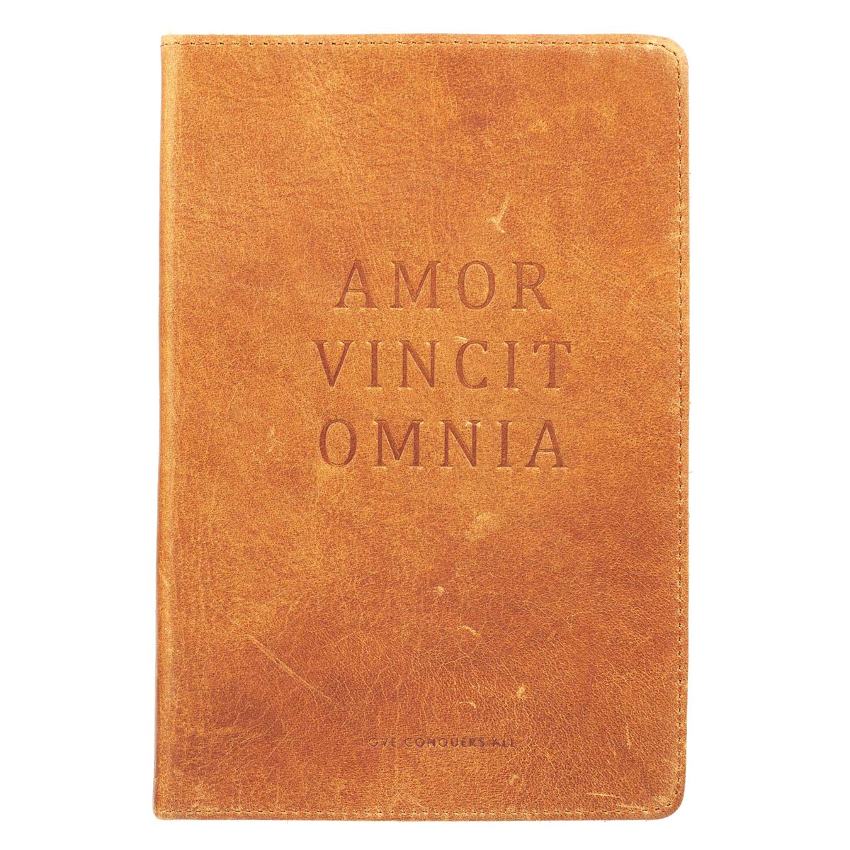 Love Conquers All Soft Full Grain Leather Journal In Brown