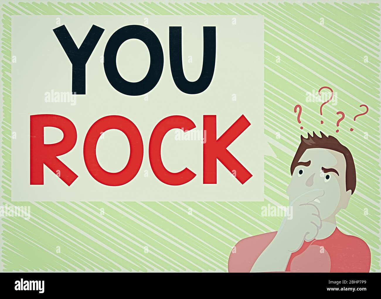 Word Writing Text You Rock Business Photo Showcasing Slang Phrase Of Praise Or Encouragement Conveying You Are Awesome Man Expressing Confused Hand O Stock Photo Alamy
