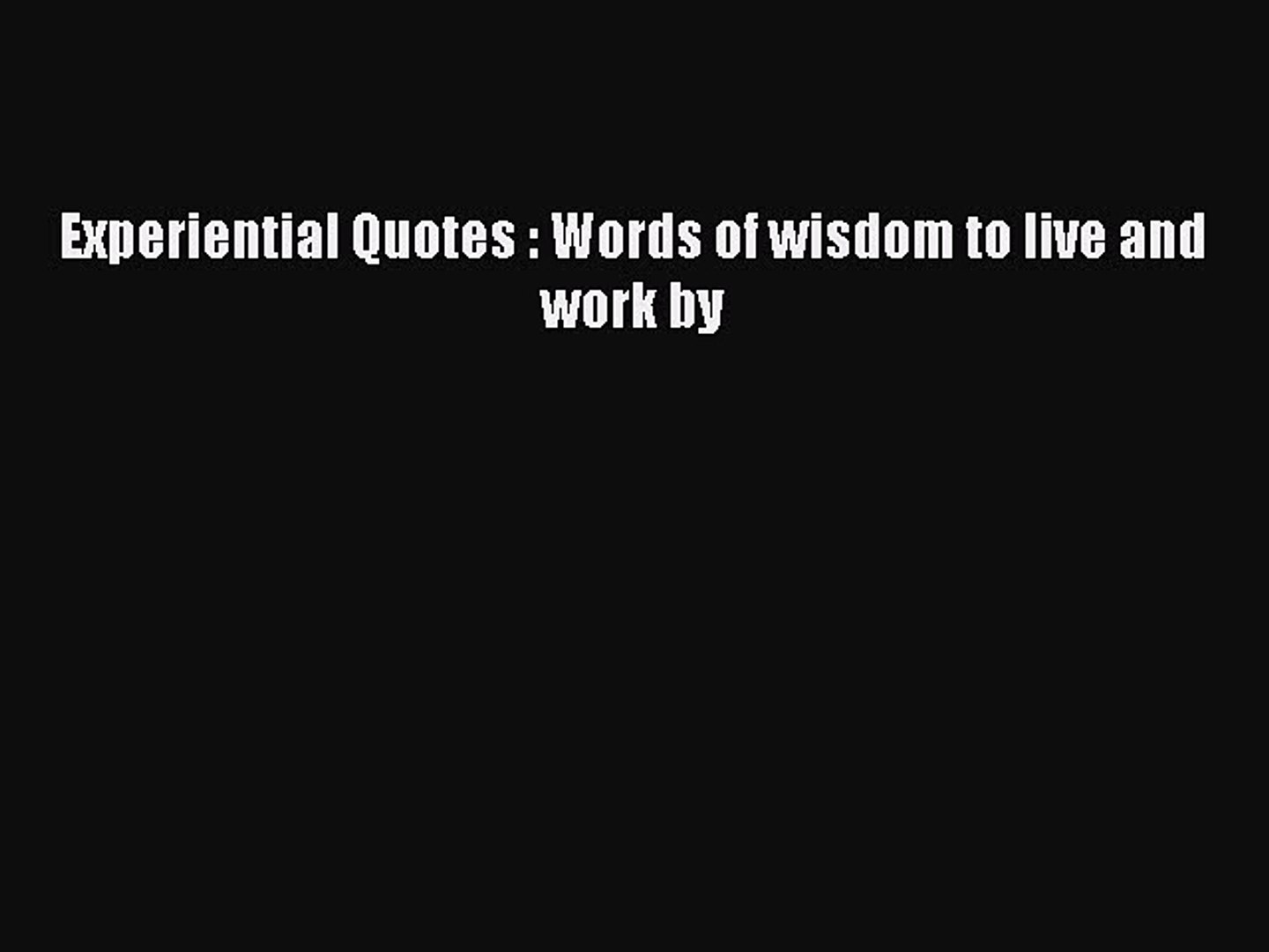 Download Experiential Quotes Words Of Wisdom To Live And Work By Pdf Free Video Dailymotion