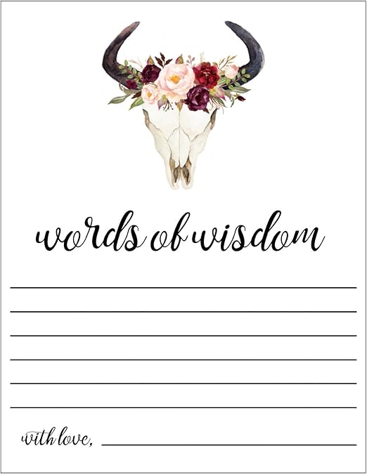 Amazon Com Boho Advice Cards Words Of Wisdom Cards With Blush Flowers And Skull Set Of 20 Bridal Shower Game Baby Shower Advice Cards Words Of Wisdom Well Wishes Flowers And Skull Tribal